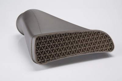 ST-130 (material de herramientas desechable) de Stratasys simplifica la producción de piezas composite huecas. Permite imprimir en 3D herramientas complejas y disolverlas fácilmente después del endurecimiento. De este modo, elimina procesos secundarios como la creación de moldes al tiempo que acelera el proceso de moldeo (superposición) de los componentes composite.